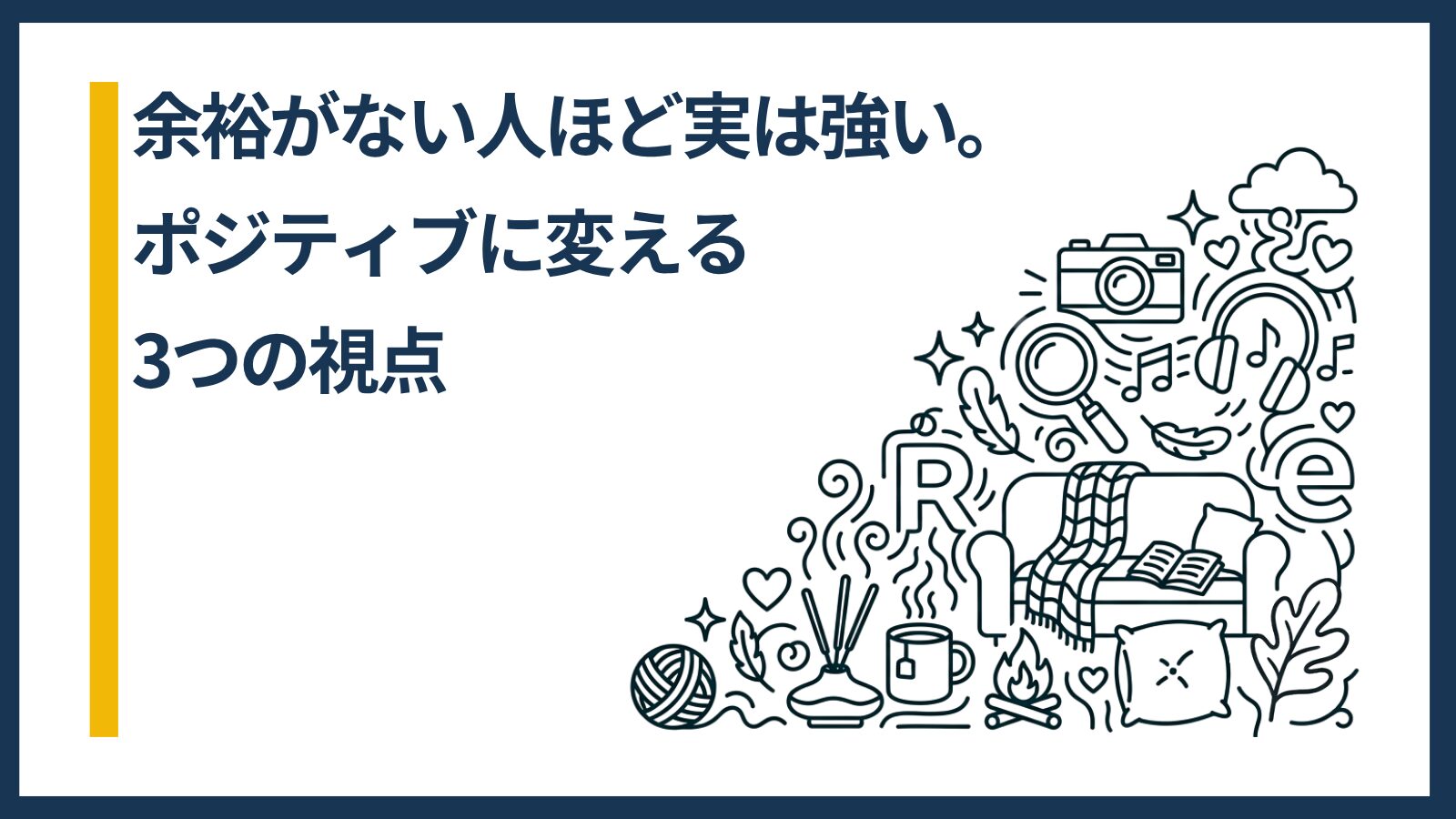 この記事では、「余裕がない」ことのポジティブな側面と、余裕がなくても動ける方法を紹介します。
