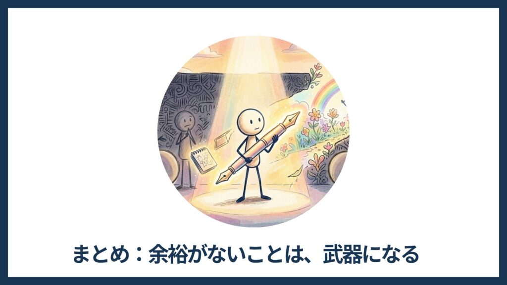 「いつか余裕ができたら」と待つより、今の「ない」状態を味方につける方法で僕はやってきています。